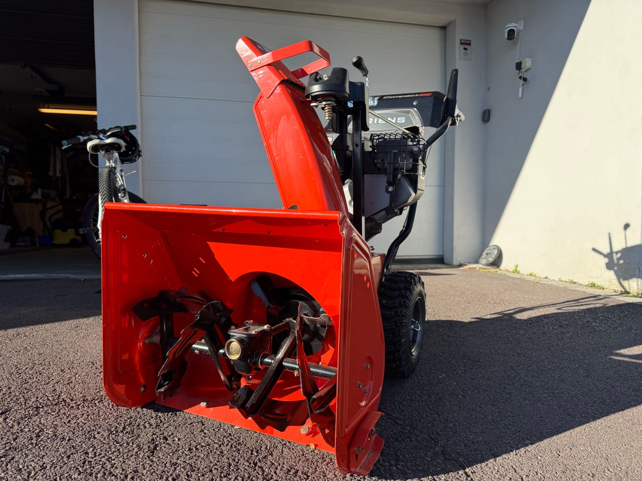 Denne har fått nytt drev i utkastersnekke, ny olje, ny plugg, ny utkasterreim, og er i topp stand. Meget effektiv og god snøfreser som starter på første draget. Kraftig LED-lampe gir godt arbeidslys. 3 gir forover, 2 bakover. Se video av en kort test i dag. Dessverre litt lite snø til å få de lengste kastene: https://youtu.be/ALdP52EaC0g Minus: kabel for å justere høyde på utkastet er dårlig.