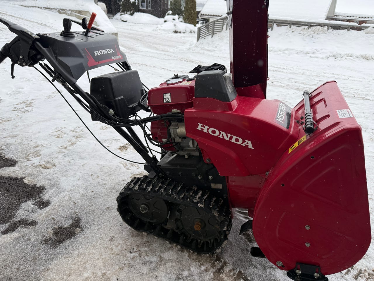 2005-modell Honda HS550 selges rimelig. Se video: https://youtu.be/K4x1VqAe1lE Dette er en overraskende effektiv maskin som faktisk tåler en del snø og drar seg fint fremover på skovlene. Om du ikke har 500 kvadratmeter gårdsplass er denne helt ypperlig. Starter enkelt og går pent. Denne kaster også våt snø. 5 sterke Honda-hester. 3,7 KW Nettopp tatt oljeskift.