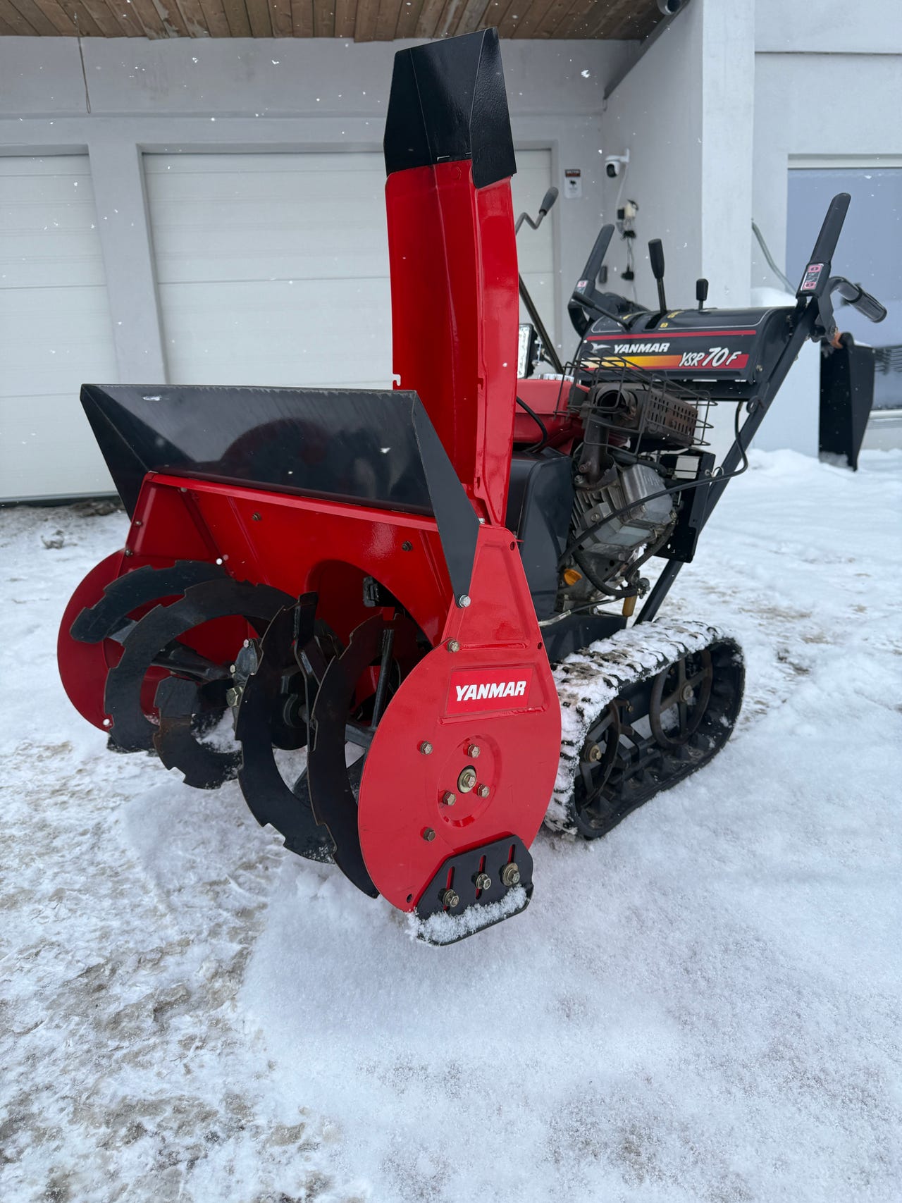 Eldre, men pent brukt kvalitetsfreser fra japanske Yamaha. Lettstartet 8 HK motor og 28-tommers bredde på skuffa. Oljeskift tatt, forgasser renset. Gode reimer og plugg. Flikket litt på lakken for å sikre god glid i utkastet. Tåler greit sammenligning med Honda kvalitetsmessig. Selges hbo 6000 kr.
